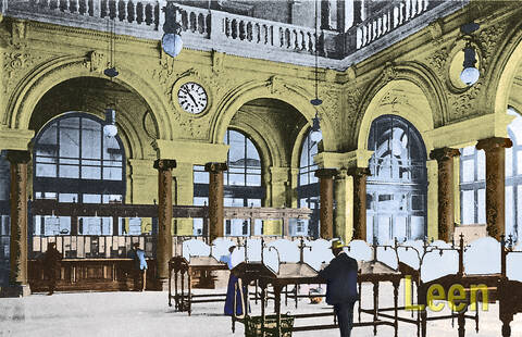 + Hieronder links: het Postkantoor binnenin en rechts: de ingang